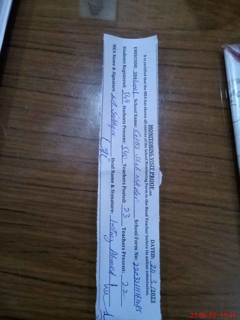| EMIS Code: 38440001 | Name of School: GHSS SHAH NIKDAR | |||