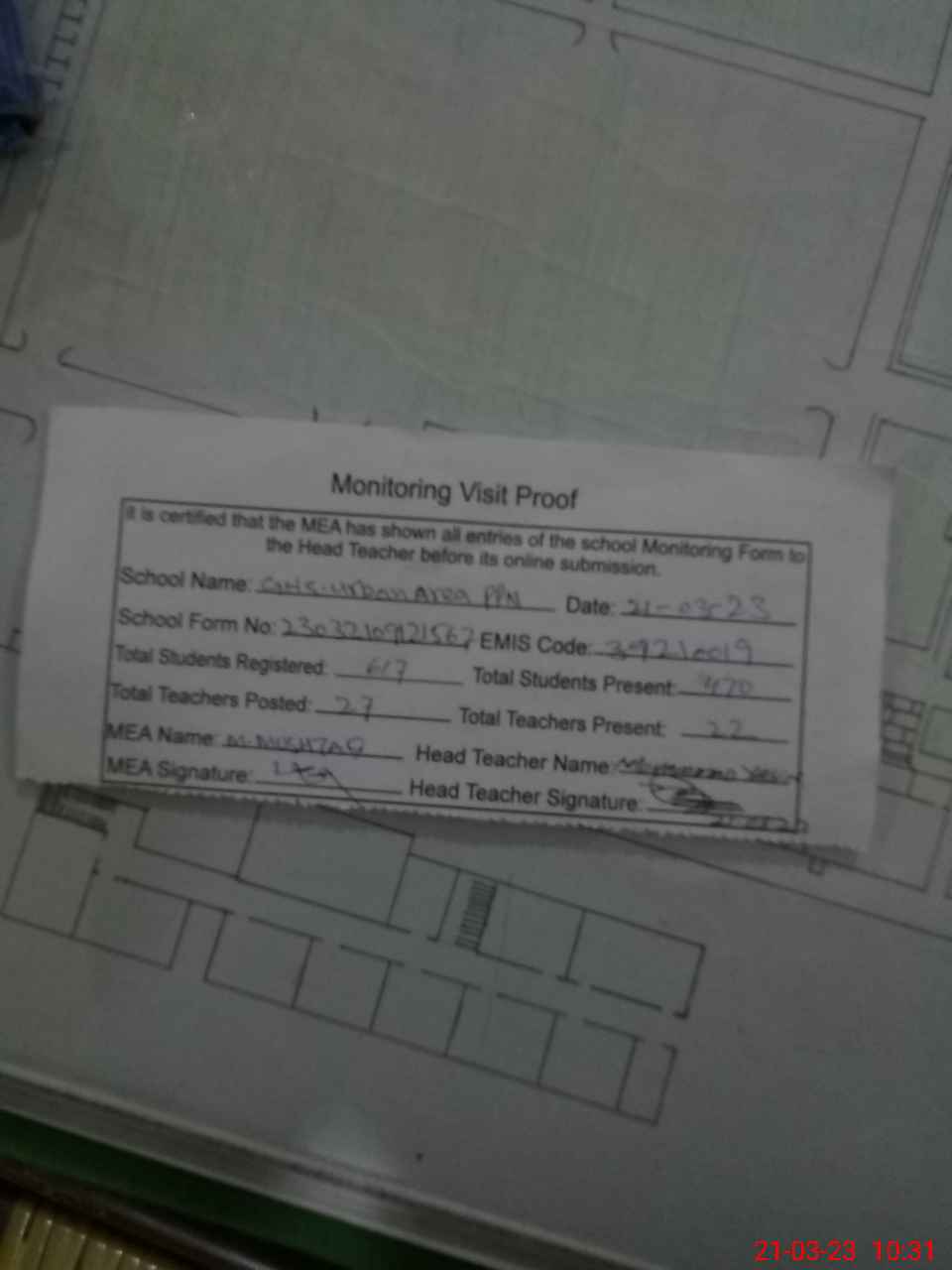 | Attendance Register | Head Teacher | MEA with School | Visit Proof |
