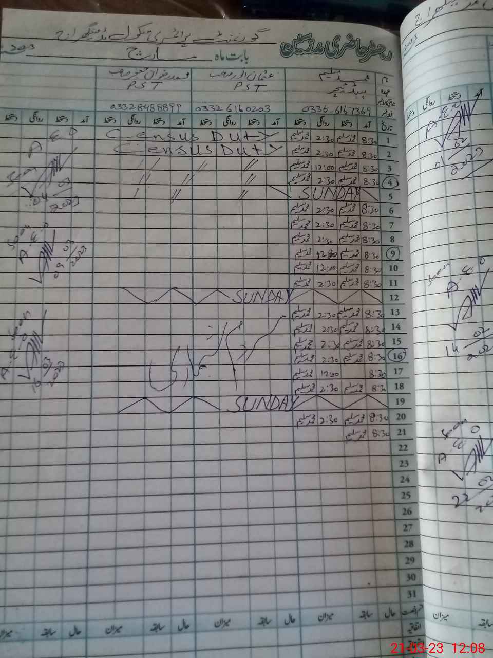 | Name: Mu**** Sa**** Designation: (School Headmaster's/Headmistress's) Headmaster Phone/Cell Number: 03**** |