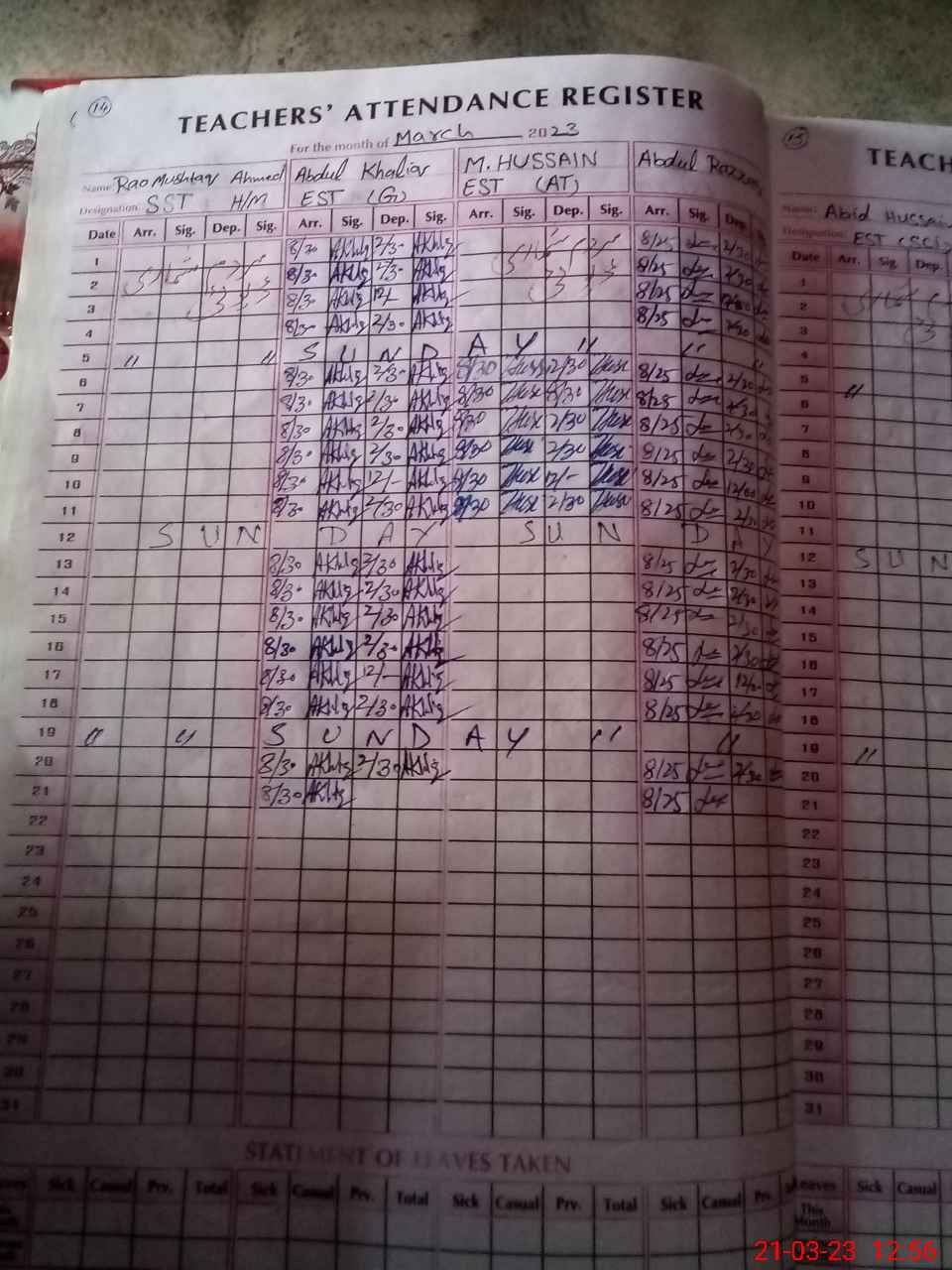 | Name: Mu**** Ah**** Designation: (School Headmaster's/Headmistress's) SST GENERAL Phone/Cell Number: 03**** |