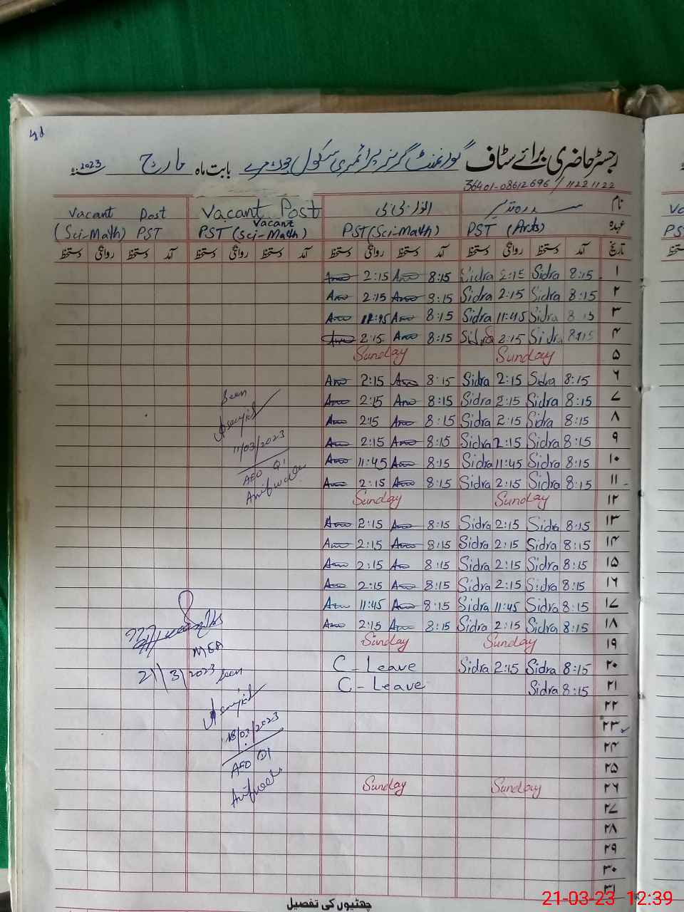 | Name: SI**** NA**** Designation: (School Headmaster's/Headmistress's) PST Phone/Cell Number: 03**** |