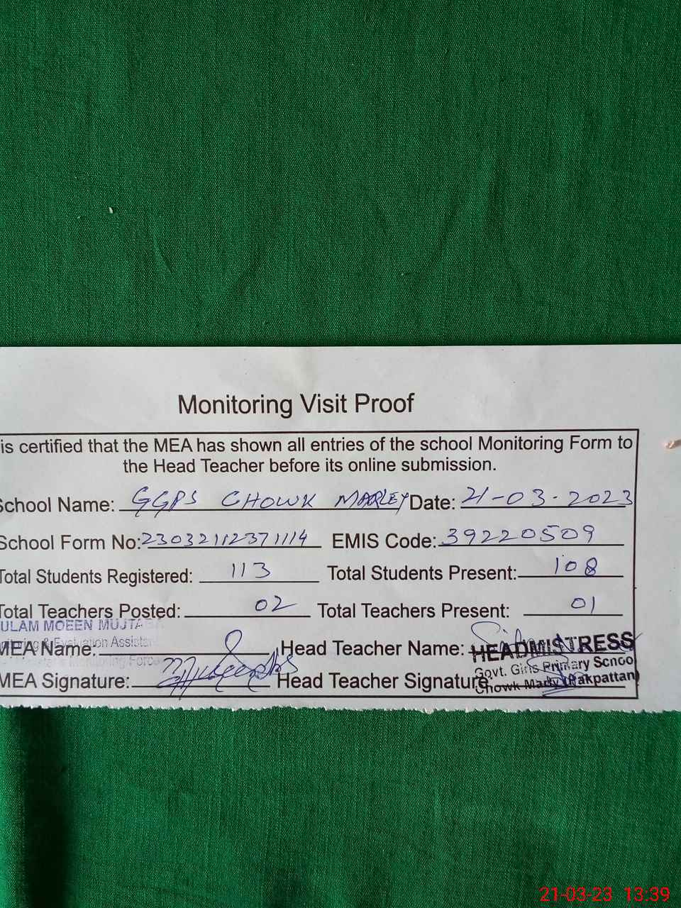 | EMIS Code: 39220509 | Name of School: GGPS CHOWK MARLAY | |||
