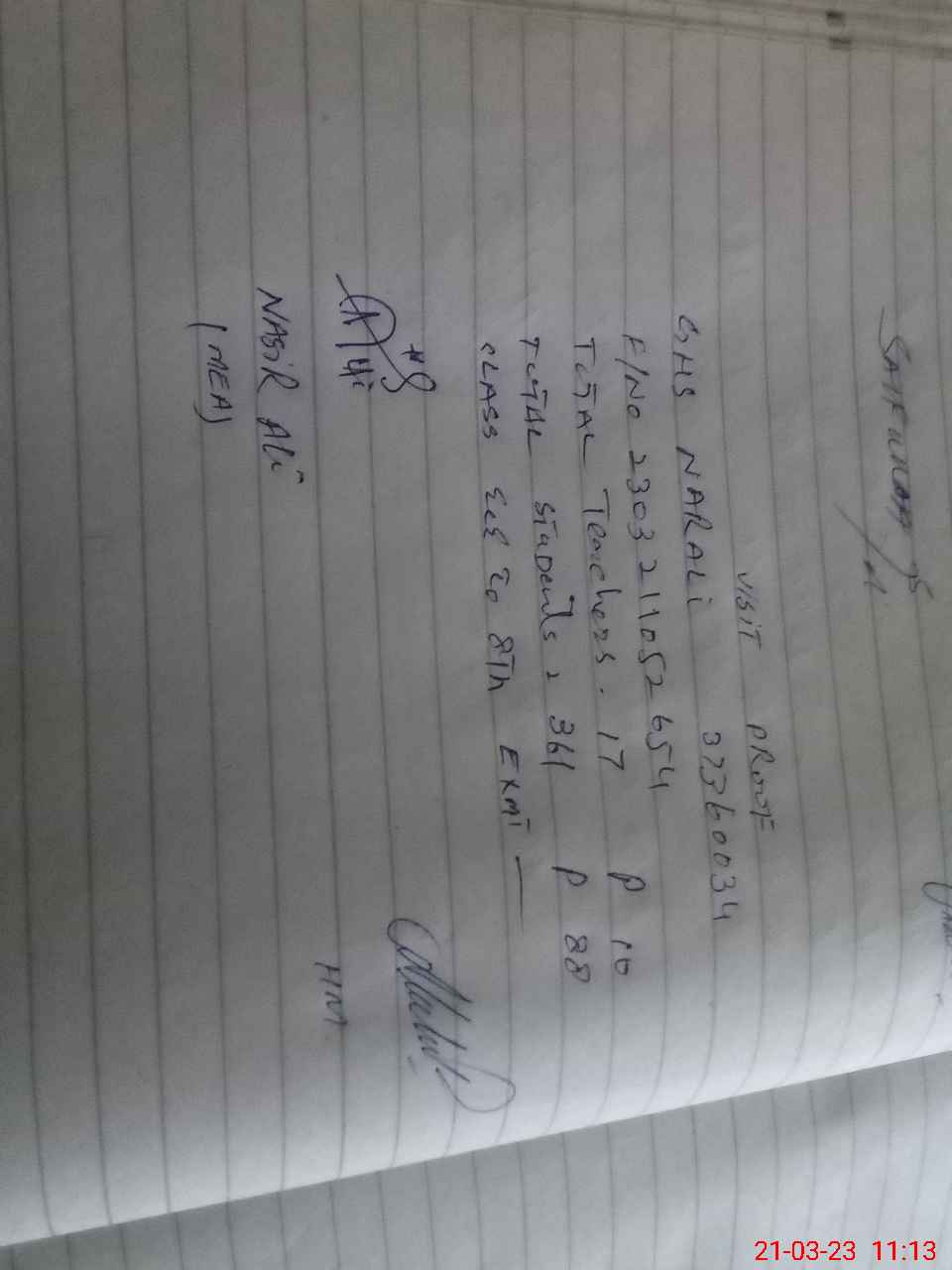 | Name: Ab**** Sa**** Designation: (School Headmaster's/Headmistress's) Sst Phone/Cell Number: 03**** |