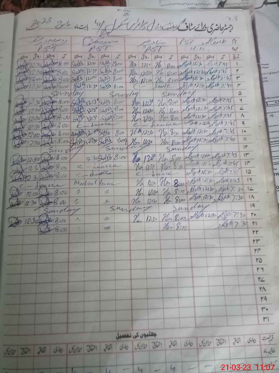 | CNIC | Full Name | Designation | R/C | Absence During Last Calender Month |