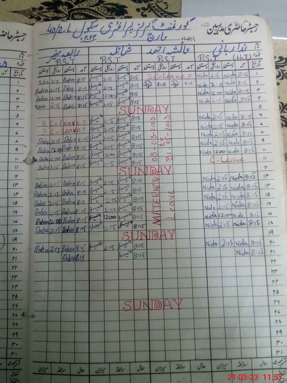 | 35**** | Ay**** Ah**** | PST | Regular | 0 | 0 | 0 | 0 | 0 | 0 | 0 | 0 | 0 | Maternity |