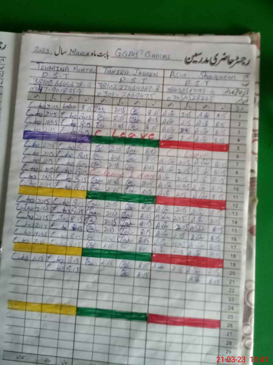| Name: As**** Sh**** Designation: (School Headmaster's/Headmistress's) PST HEAD Phone/Cell Number: 03**** |