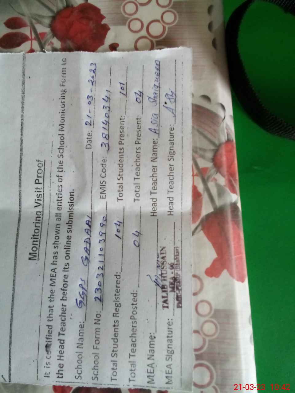 | Certified that this School was Inspected by the Undersigned MEA/DMO Today and the Information Stated Above is as Per Record. | |||||