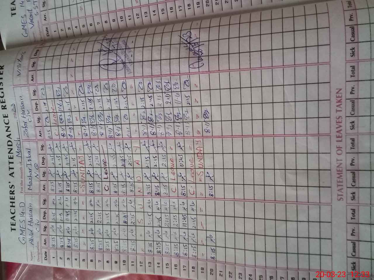 | CNIC | Full Name | Designation | R/C | Absence During Last Calender Month |