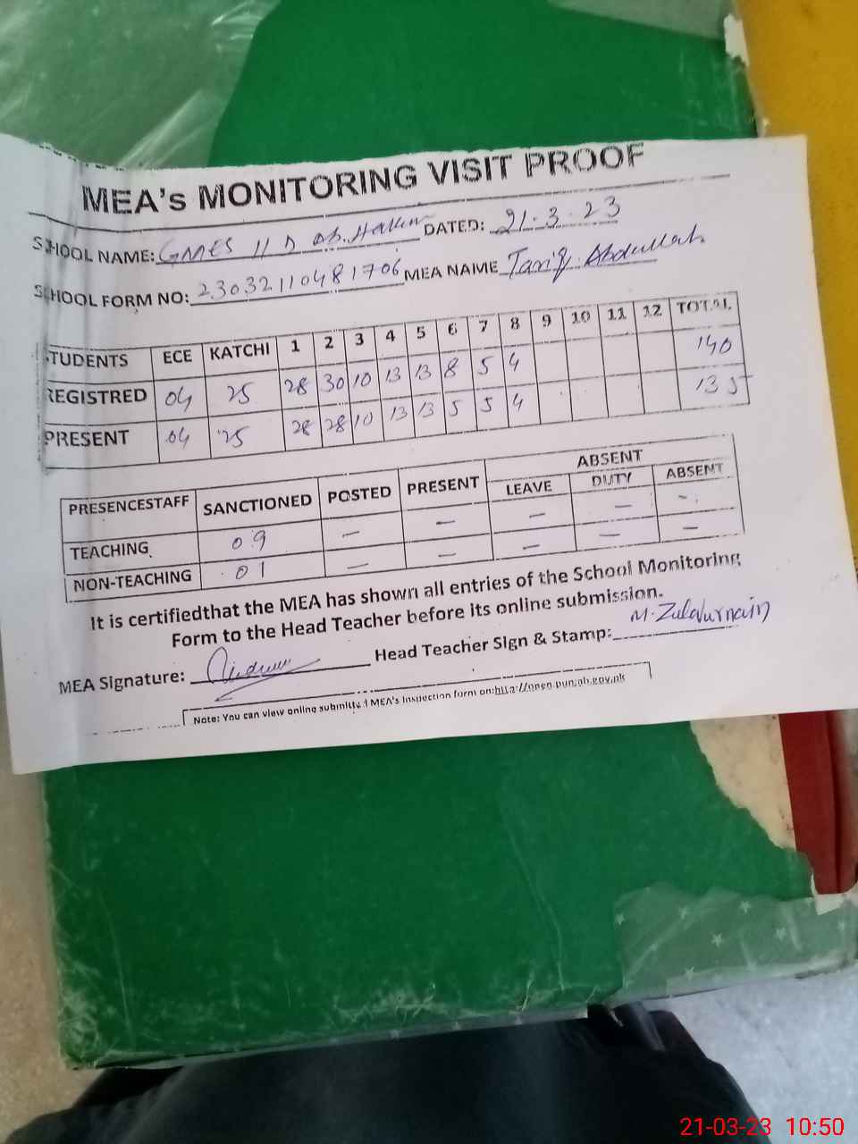 | EMIS Code: 36410480 | Name of School: GMES 11/D, ABDUL HAKIM | |||