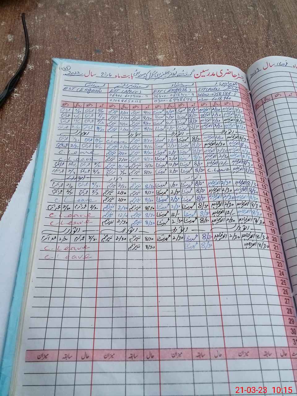 | Leave | Duty | Absent | Maternity | Medical | Ex- Pak |