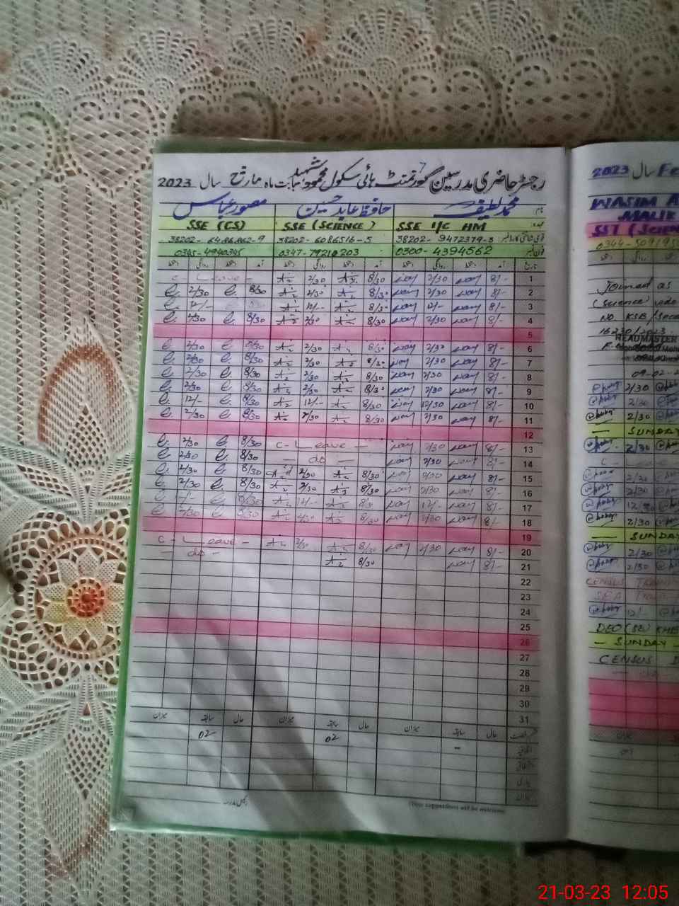 | Name: Wa**** Ab**** Ma**** Designation: (School Headmaster's/Headmistress's) SST Sci Phone/Cell Number: 03**** |