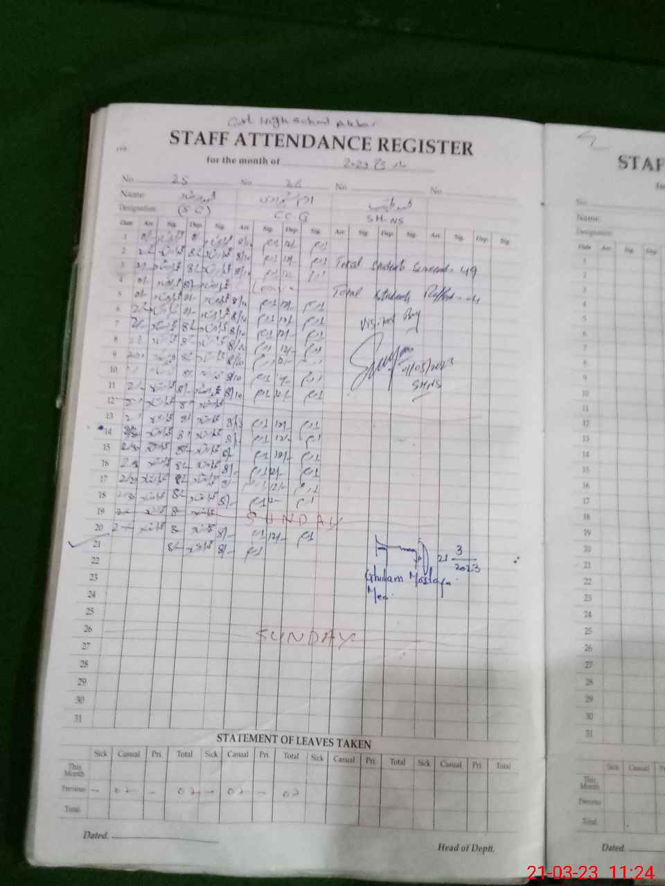 | Remarks (Use Separate Page if Required): LND file still not working owing to software and server issues Final promotional examination are being taken owing to this the Nazra period of all classes not being contracted | |||||