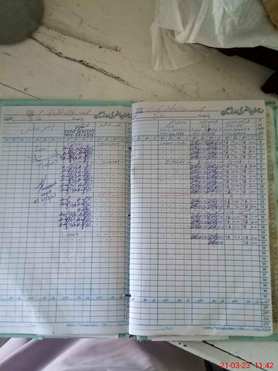 | CNIC | Full Name | Designation | R/C | Absence During Last Calender Month |