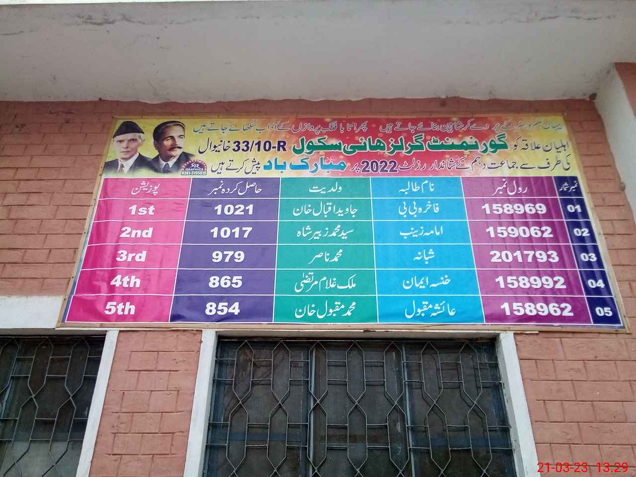 | EMIS Code: 36420120 | Name of School: GGHS 33/10-R, KACHA KHUH | |||