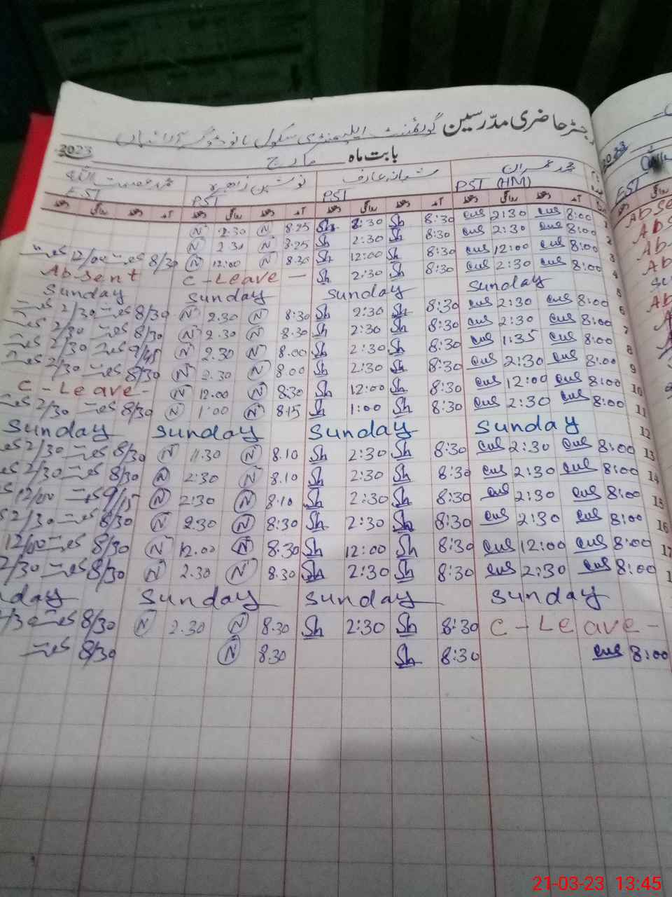 | Leave | Duty | Absent | Maternity | Medical | Ex- Pak |