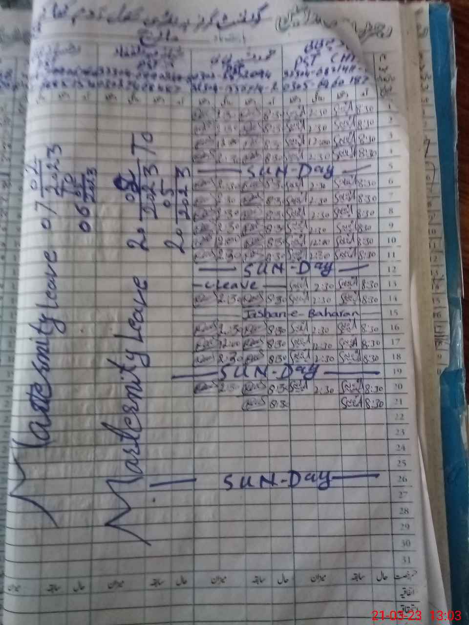 | 32**** | Sh**** Ab**** Gh**** | PST | Regular | 0 | 0 | 0 | 0 | 0 | 0 | 0 | 0 | 0 | Maternity |