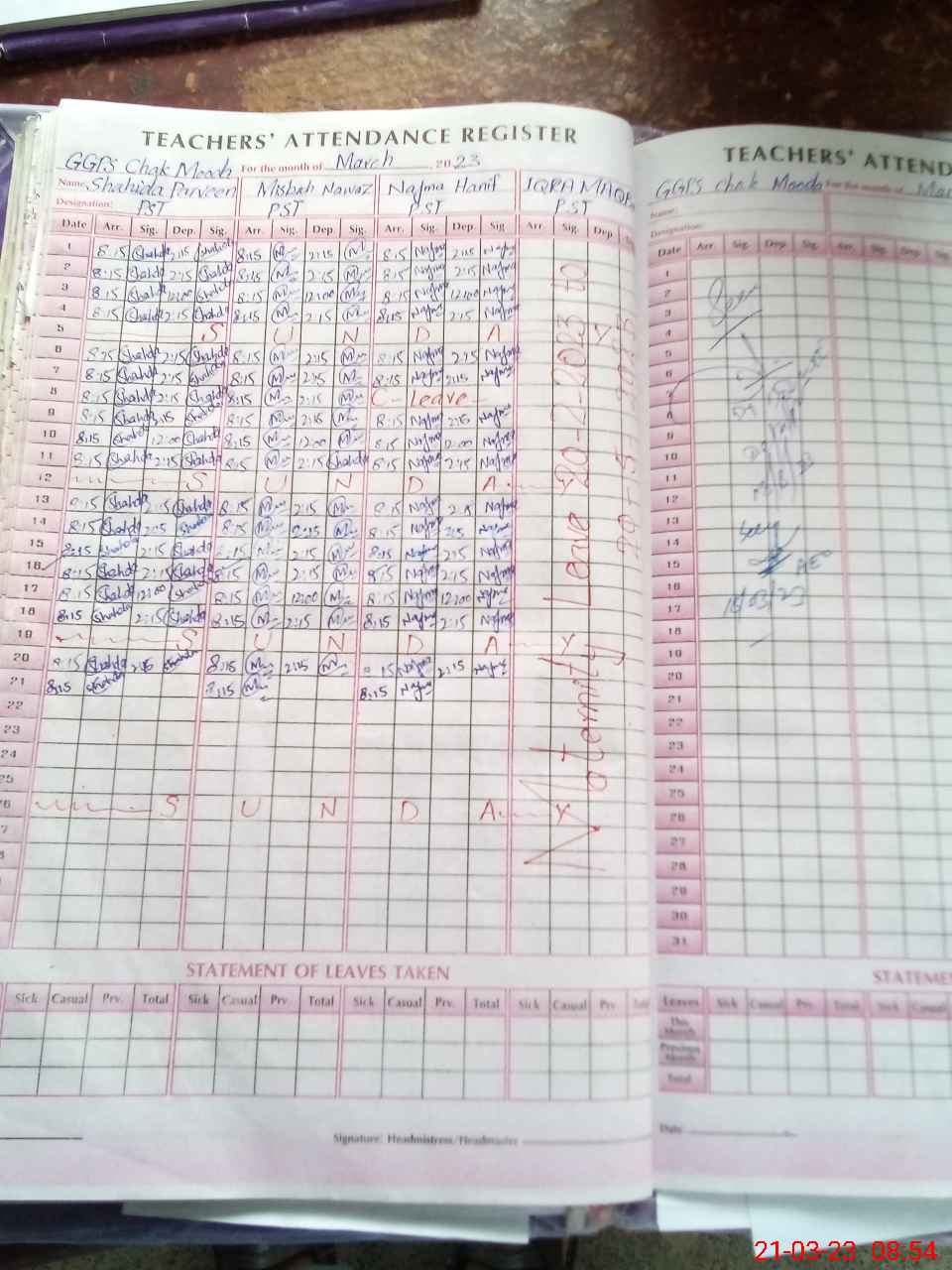 | Leave | Duty | Absent | Maternity | Medical | Ex- Pak |