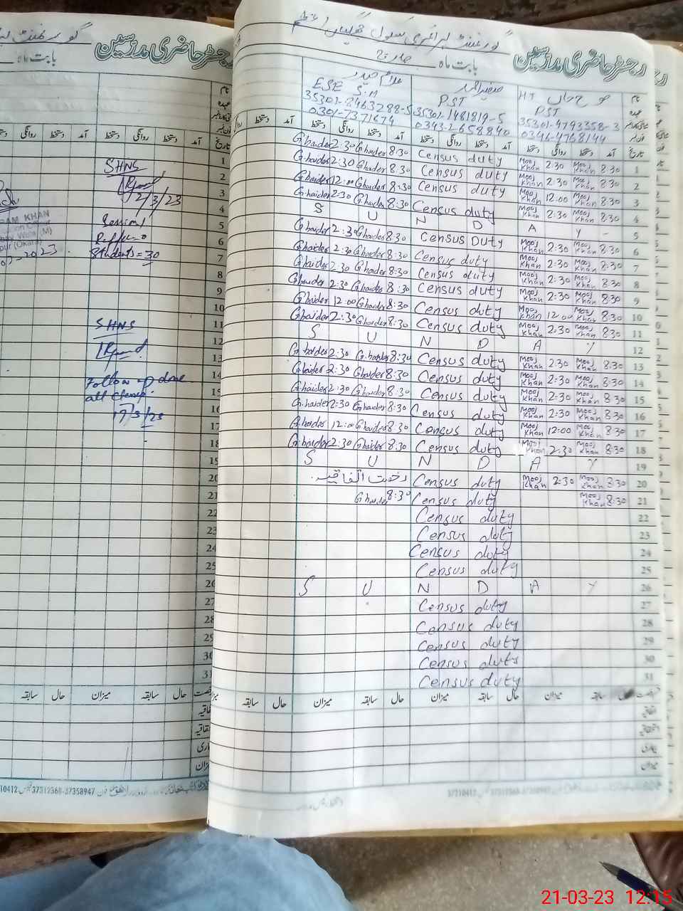 | Name: SA**** HU**** Designation: (School Headmaster's/Headmistress's) PST Phone/Cell Number: 03**** |