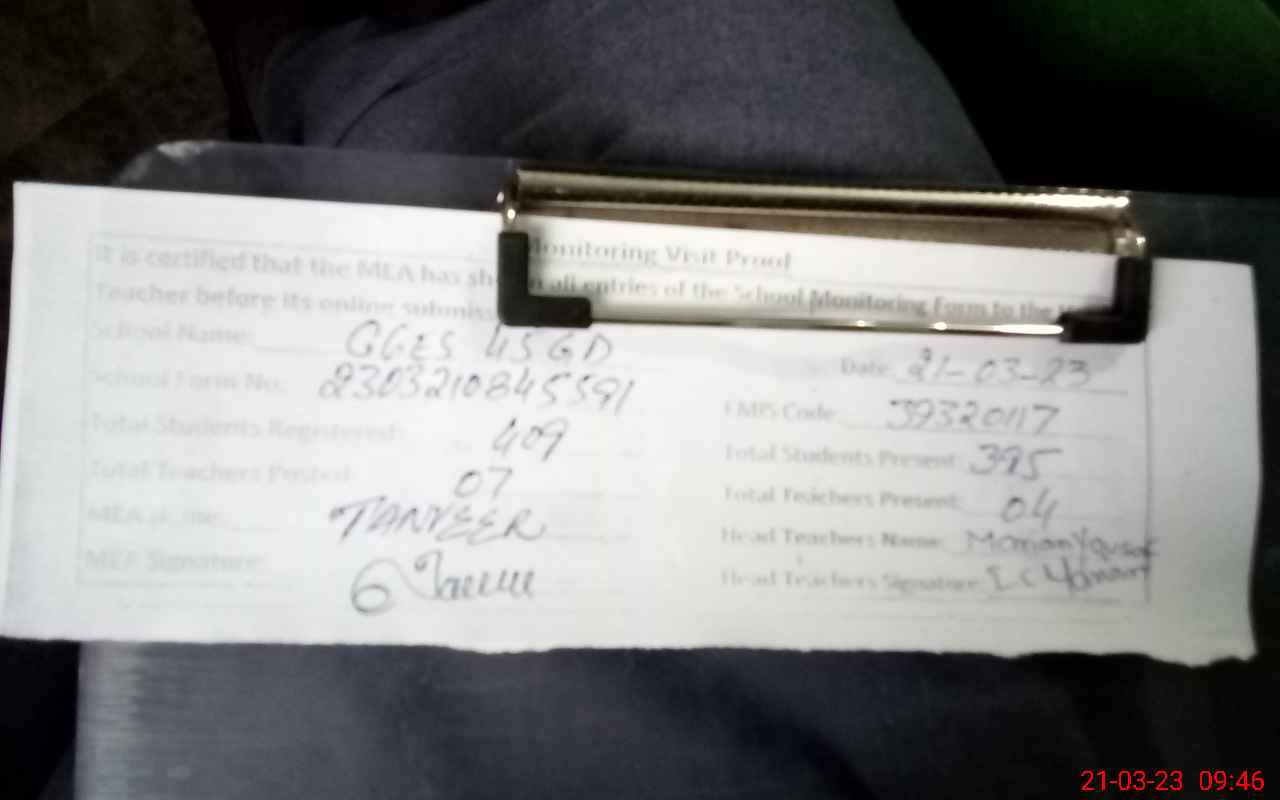 | EMIS Code: 39320117 | Name of School: GGES 45/G.D OKARA | |||