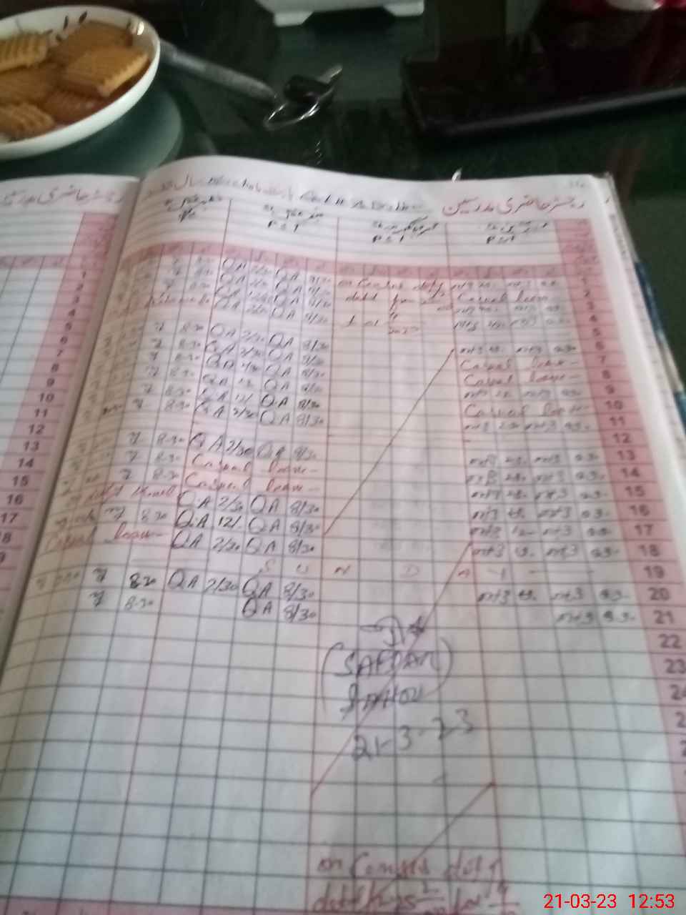 | CNIC | Full Name | Designation | R/C | Absence during last cal. month |