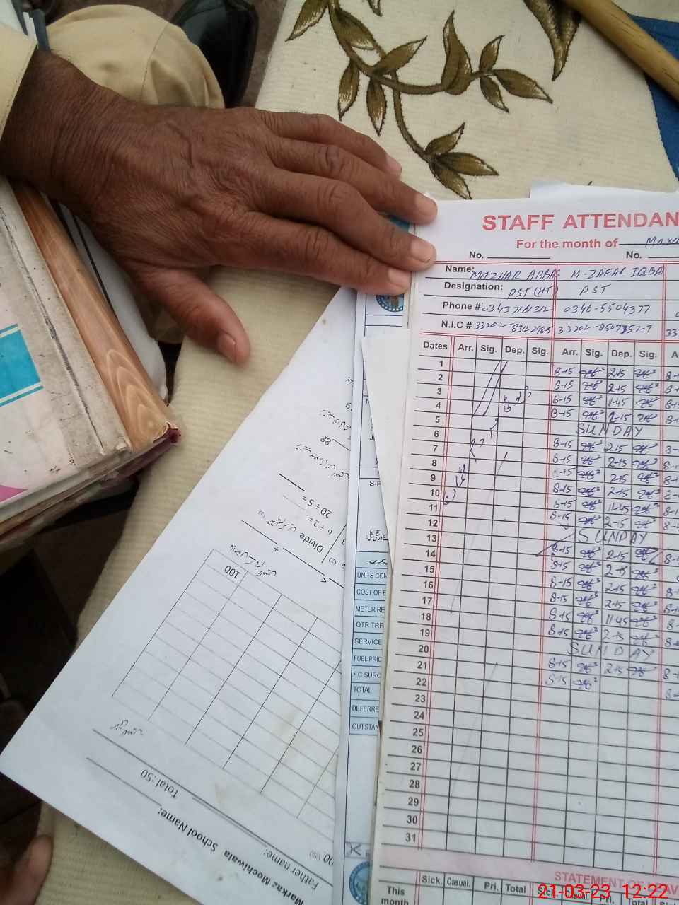 | Name: MA**** AB**** Designation: (School Headmaster's/Headmistress's) PST/ Phone/Cell Number: 03**** |