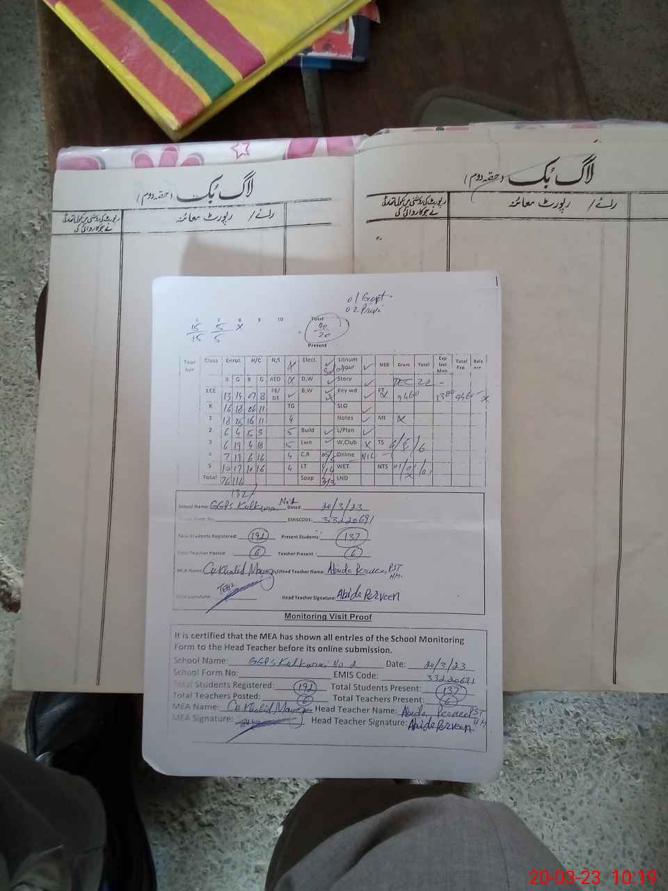 | Attendance Register | Head Teacher | MEA with School | Visit Proof |