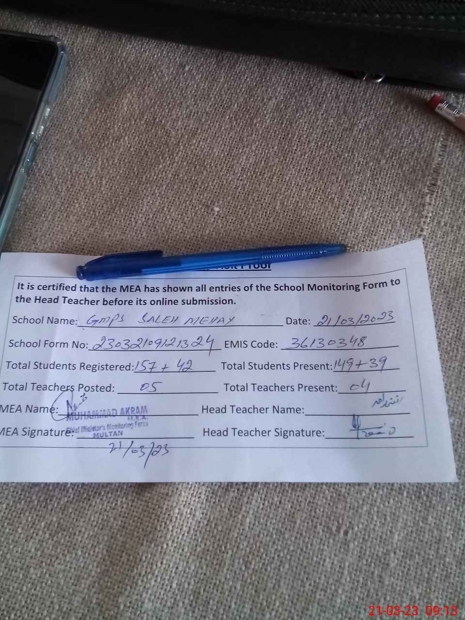 | EMIS Code: 36130348 | Name of School: GMPS SALEH MEHAY POST BOX NAWAB PUR | |||