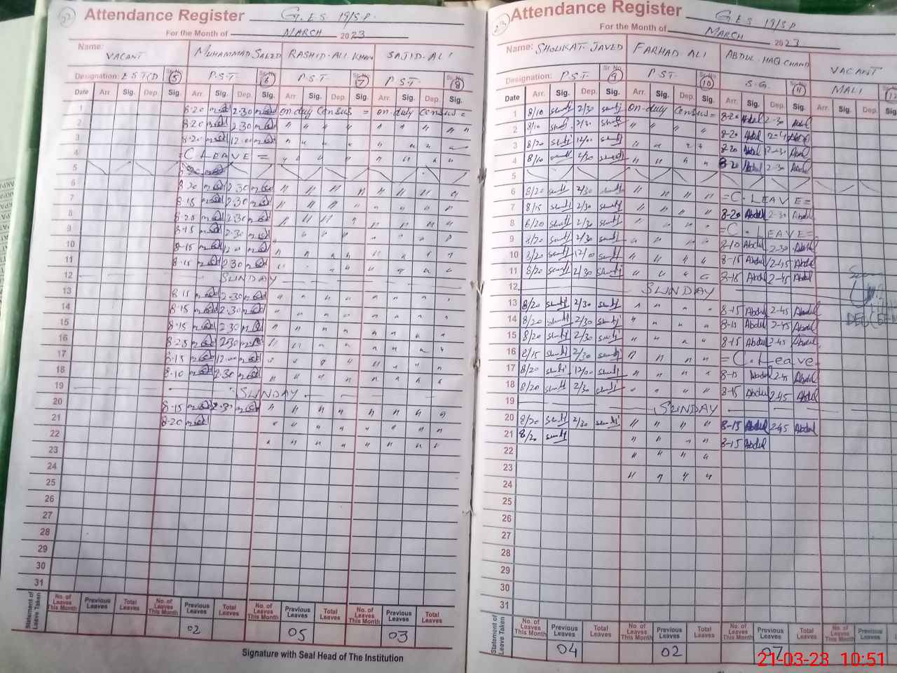 | Name: RI**** AH**** Designation: (School Headmaster's/Headmistress's) SST (GENERAL) Phone/Cell Number: 03**** |