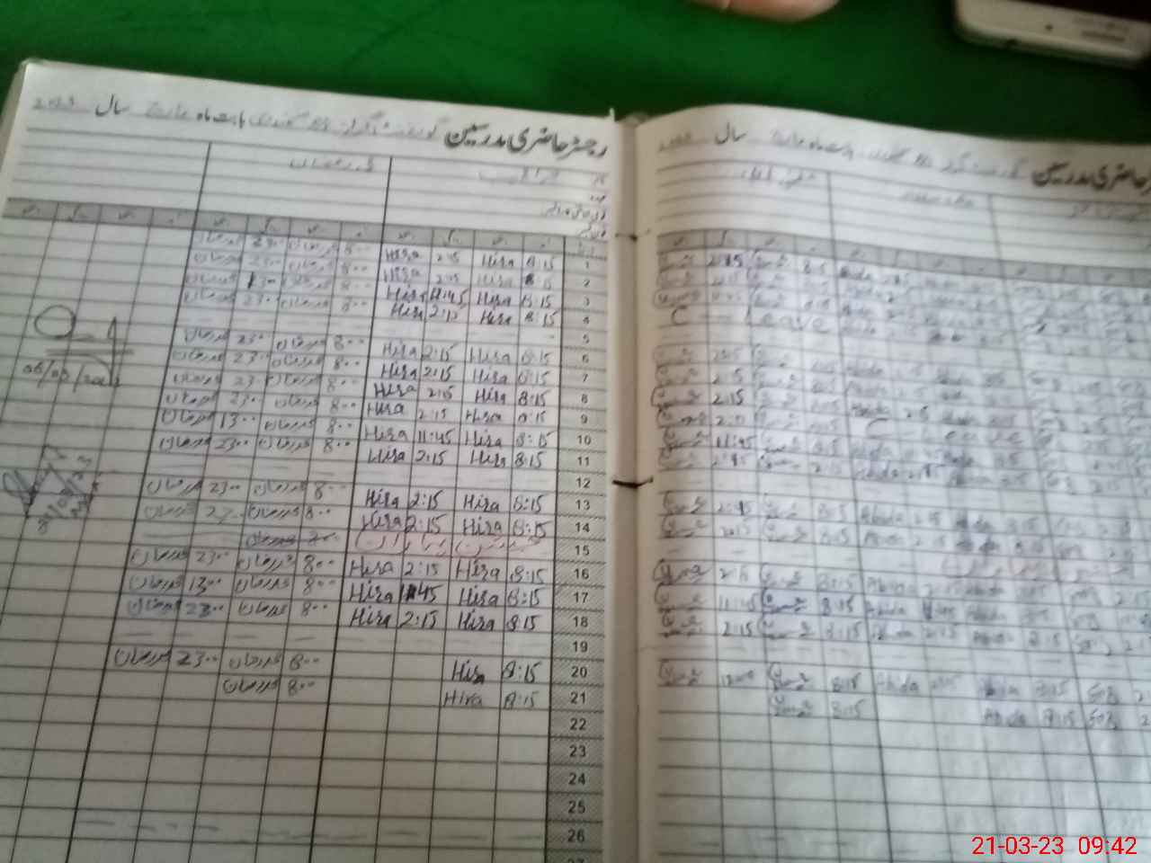 | CNIC | Full Name | Designation | R/C | Absence During Last Calender Month |