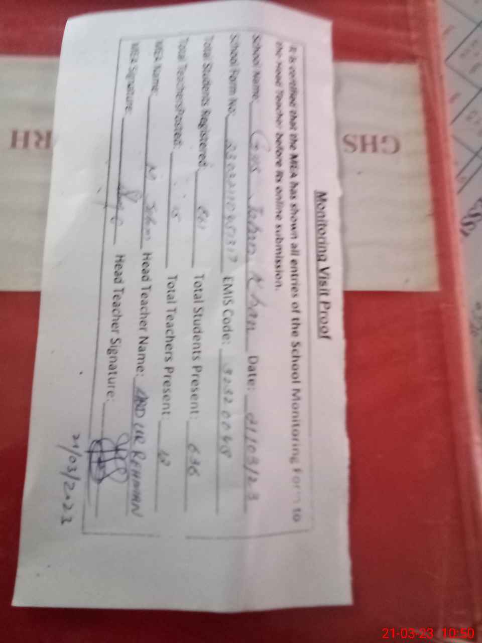 | EMIS Code: 32320048 | Name of School: GHS JAHAN KHAN | |||