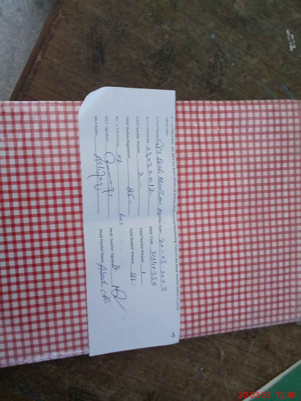 | Attendance Register | Head Teacher | MEA with School | Visit Proof |