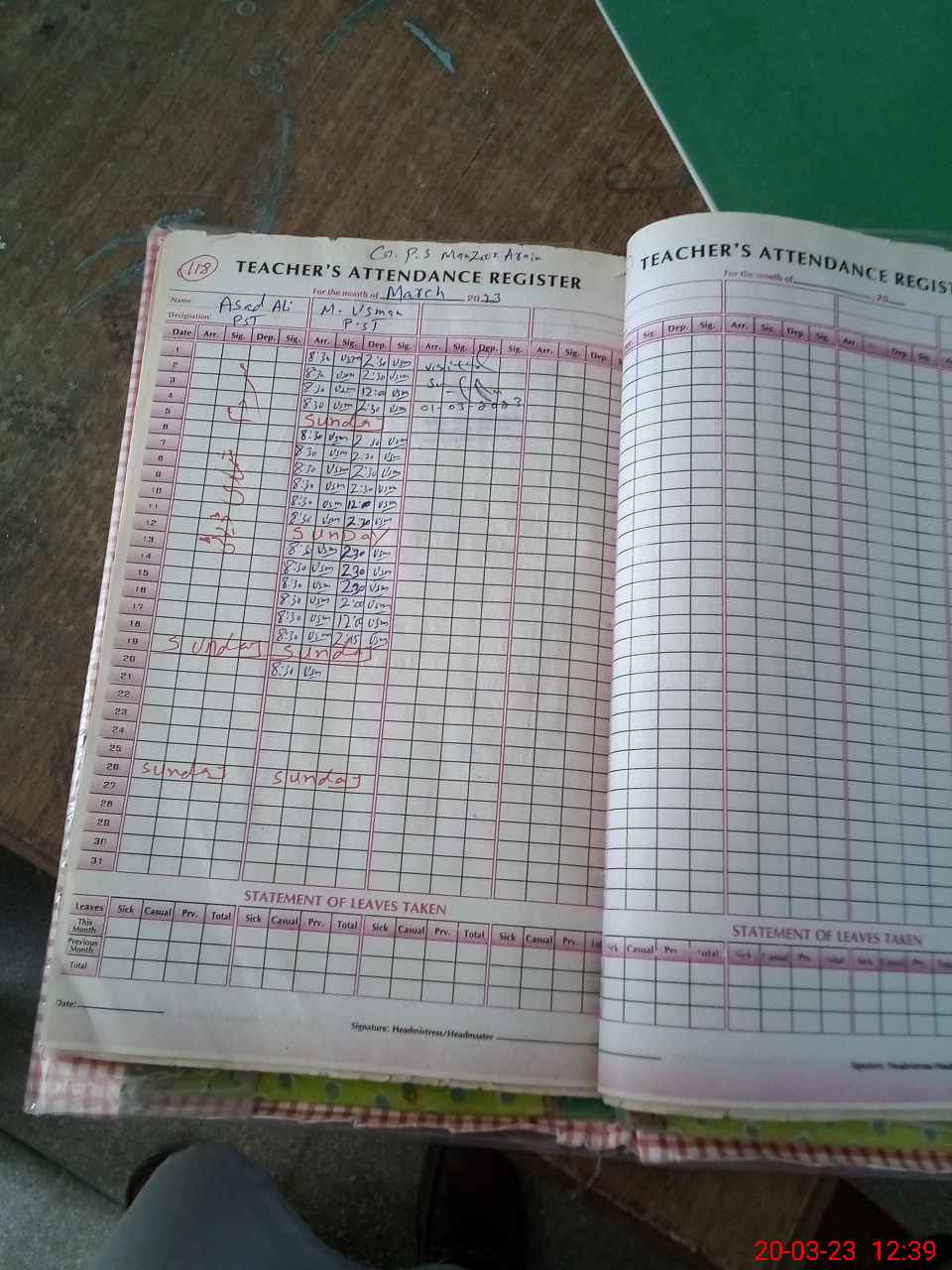 | Name: As**** Al**** Designation: (School Headmaster's/Headmistress's) PST Phone/Cell Number: 03**** |