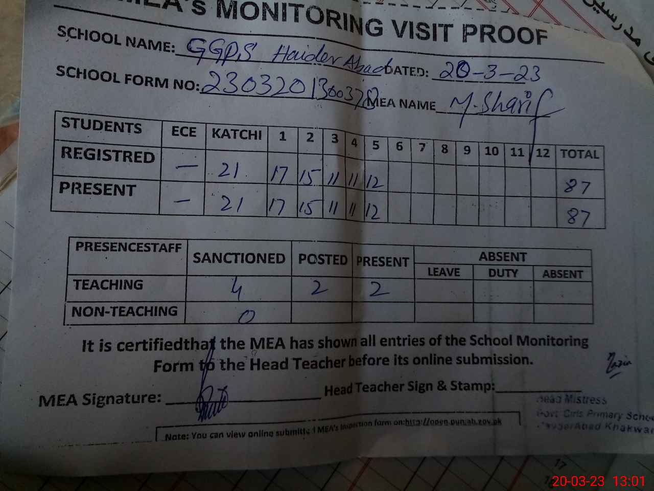 | EMIS Code: 36430357 | Name of School: GGPS HAIDER ABAD KHAKWANI, TULAMBA | |||