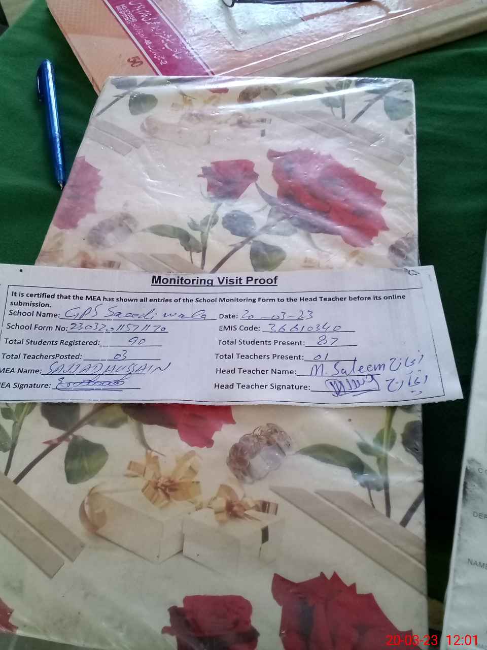 | EMIS Code: 36610340 | Name of School: GPS SAEEDI WALA | |||