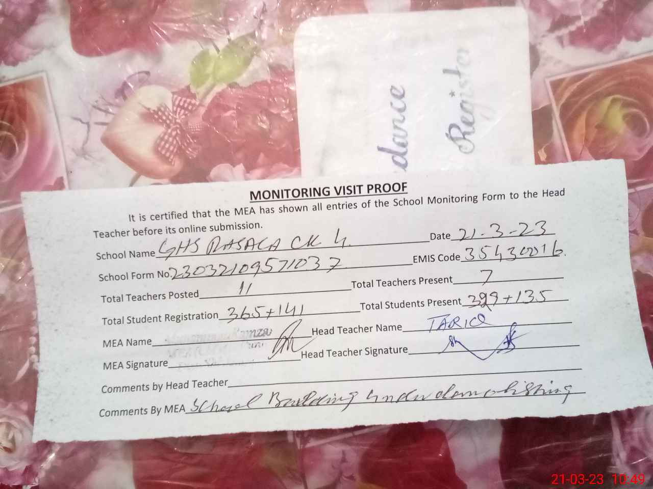 | EMIS Code: 35430016 | Name of School: GHS RASALA CHAK NO. 4 | |||