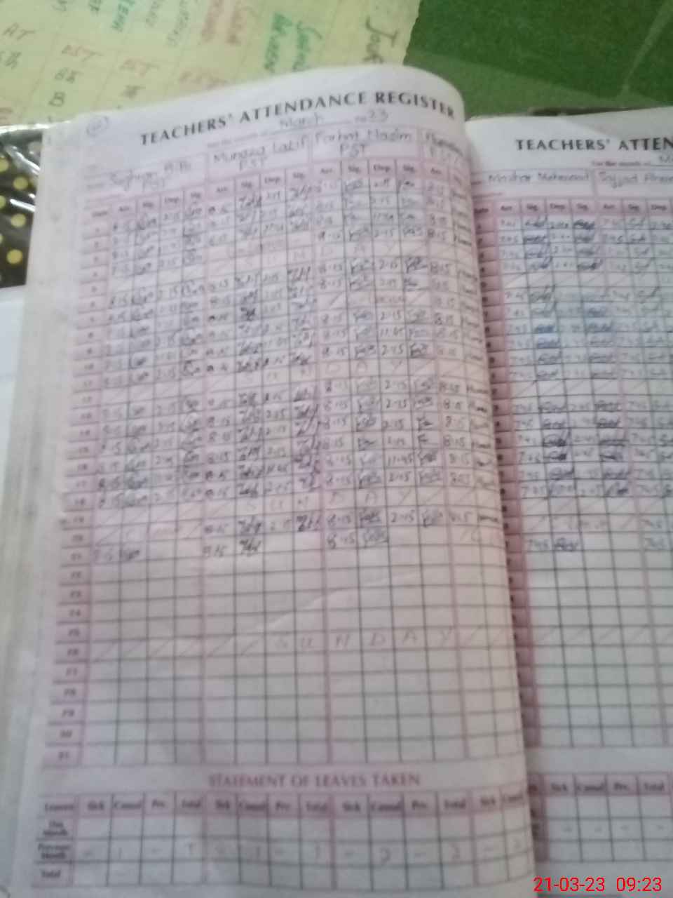 | Monitoring Date: 21-03-2023 | Start Time: 21-03-2023 09:18 AM | End Time: 21-03-2023 09:41 AM | Name of MEA: Sa**** Hu**** | |