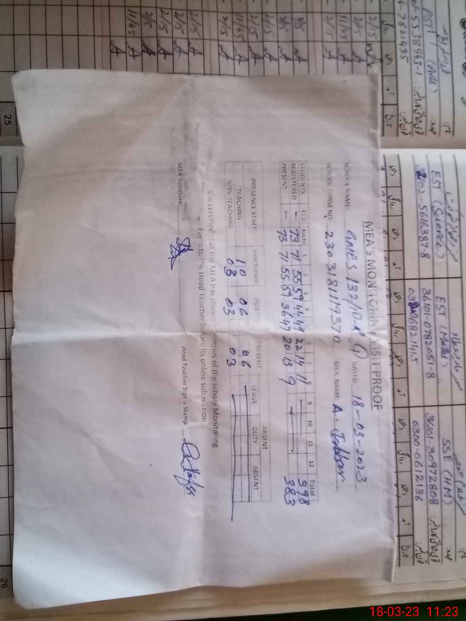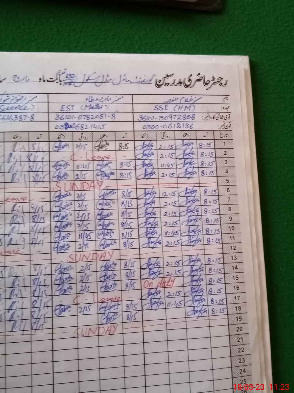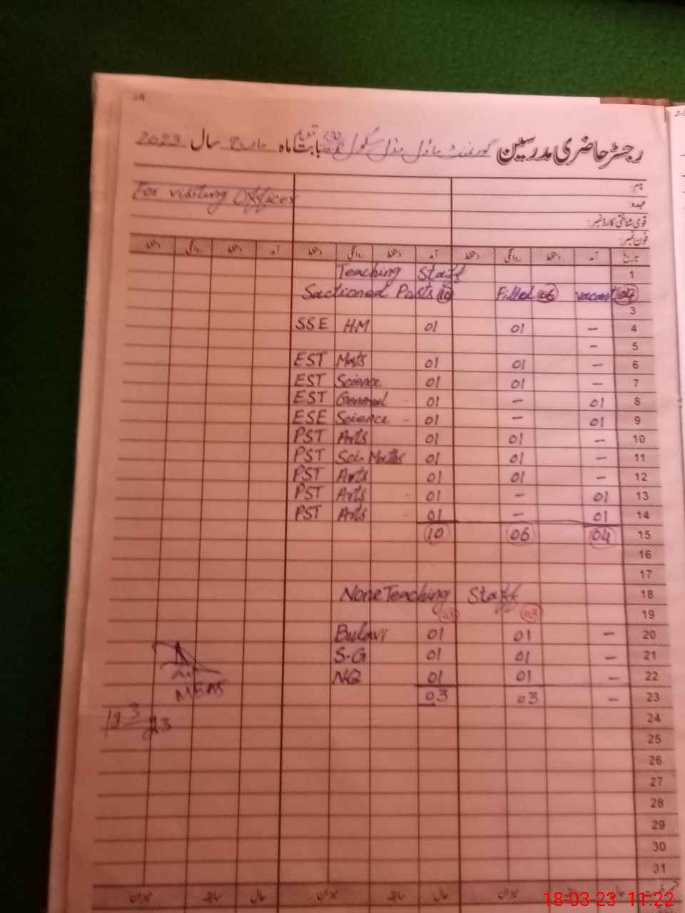 | Name: Gh**** Ha**** Designation: (School Headmaster's/Headmistress's) SST GENERAL Phone/Cell Number: 03**** |