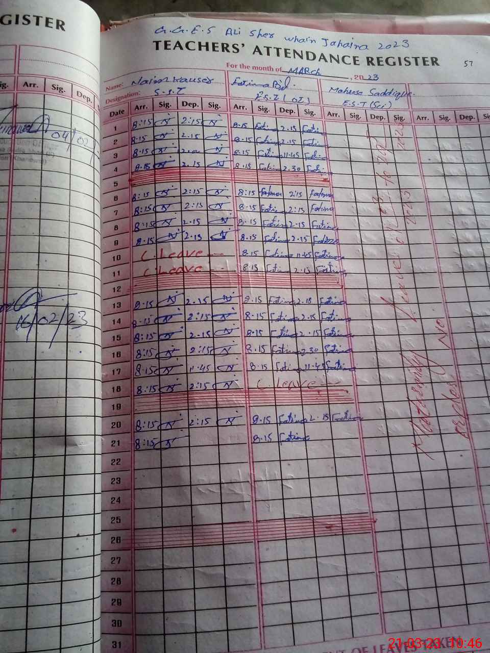 | Leave | Duty | Absent | Maternity | Medical | Ex- Pak |