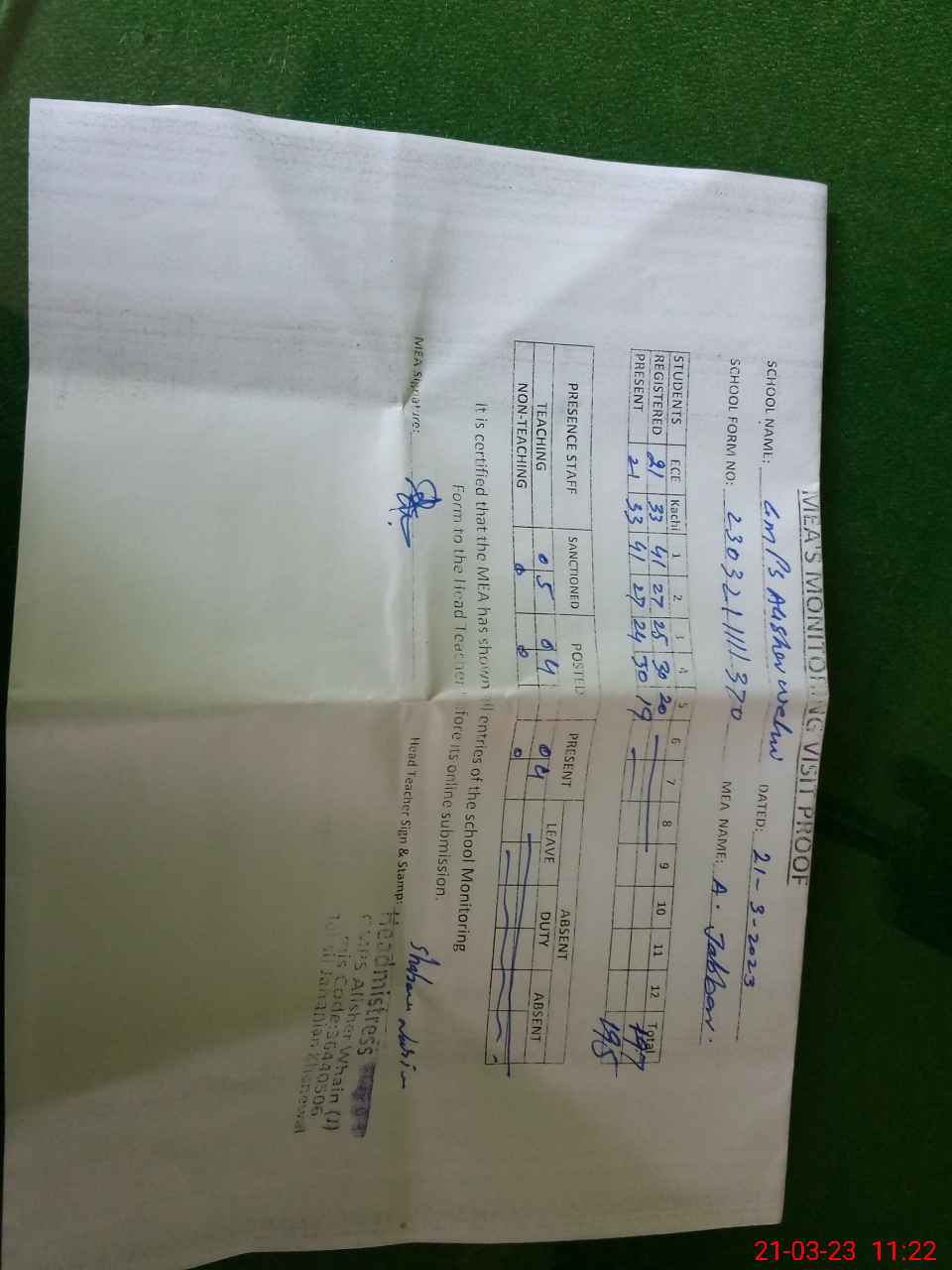 | Certified that this School was Inspected by the Undersigned MEA/DMO Today and the Information Stated Above is as Per Record. | |||||
