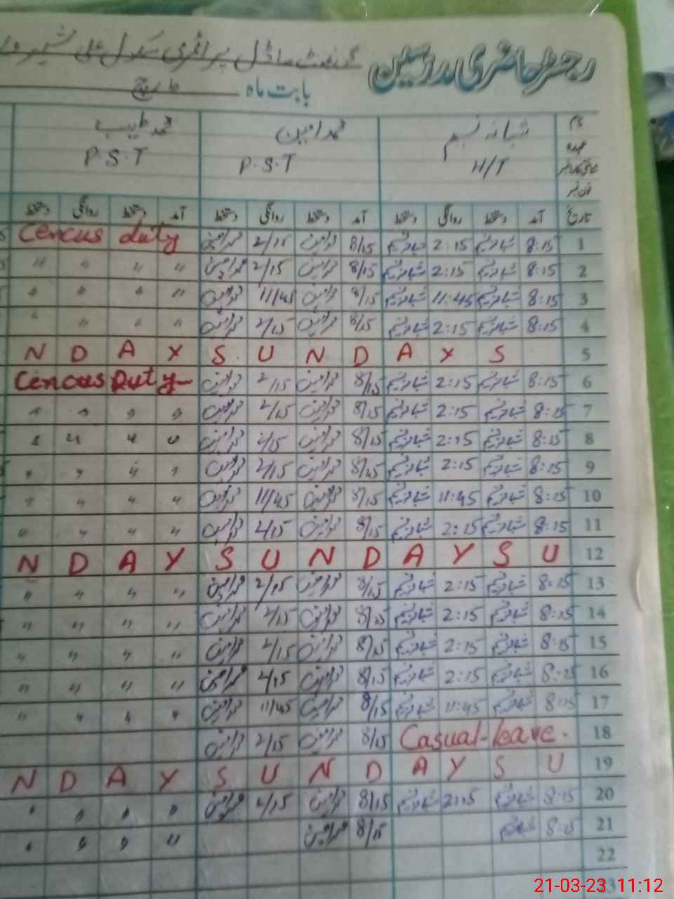| Name: SH**** NA**** Designation: (School Headmaster's/Headmistress's) PST Phone/Cell Number: 03**** |