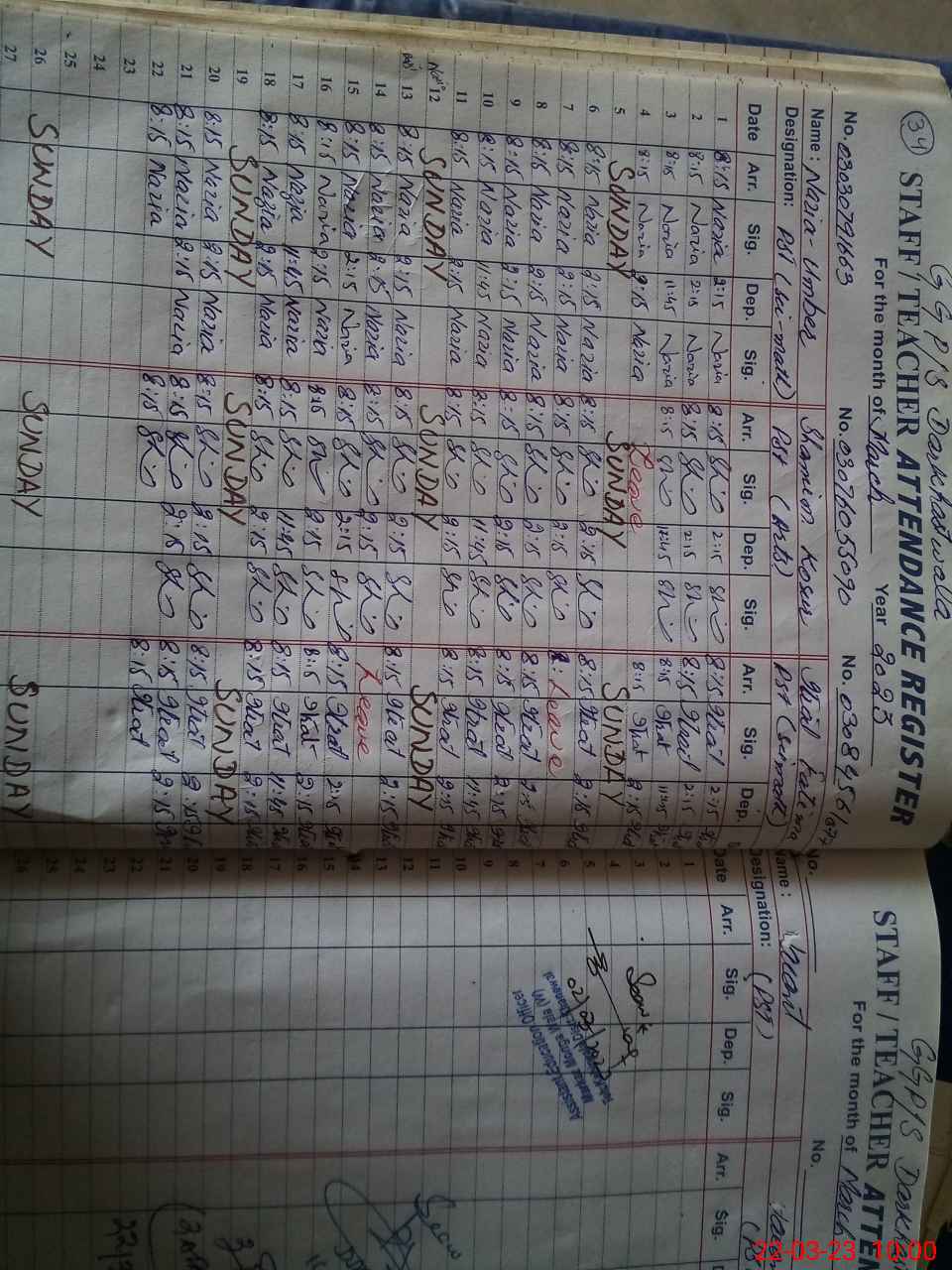 | School Visited by School Health & Nutrition Supervisor (No. of Visits) | Name1: | Masooda Bibi | Name2: | ||