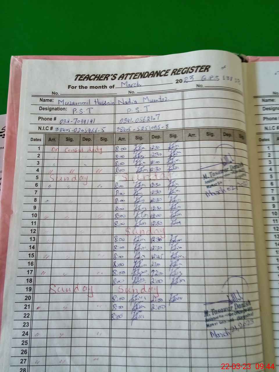 | Name: Mu**** Hu**** Designation: (School Headmaster's/Headmistress's) PST Phone/Cell Number: 03**** |