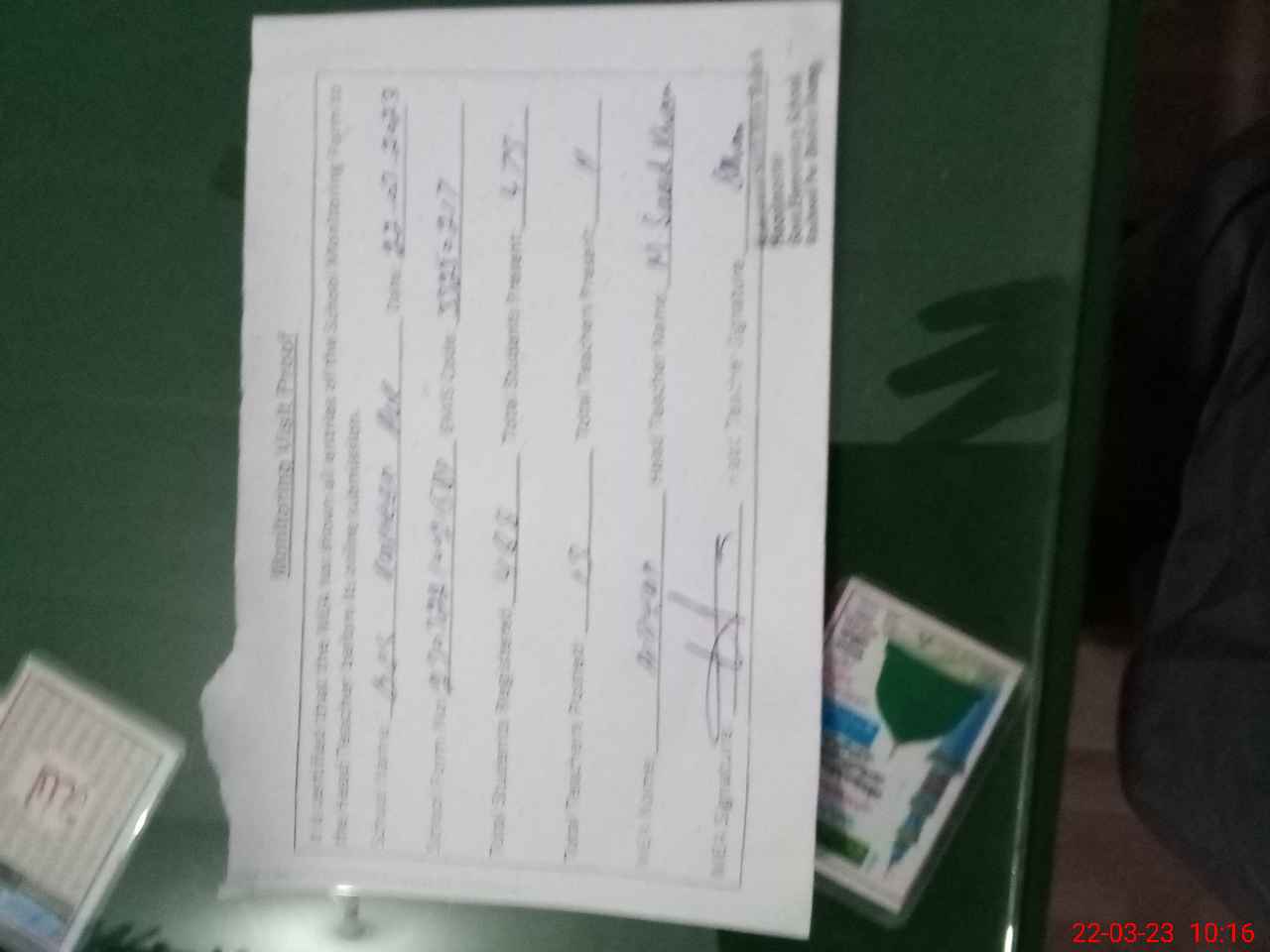 | Attendance Register | Head Teacher | MEA with School | Visit Proof |