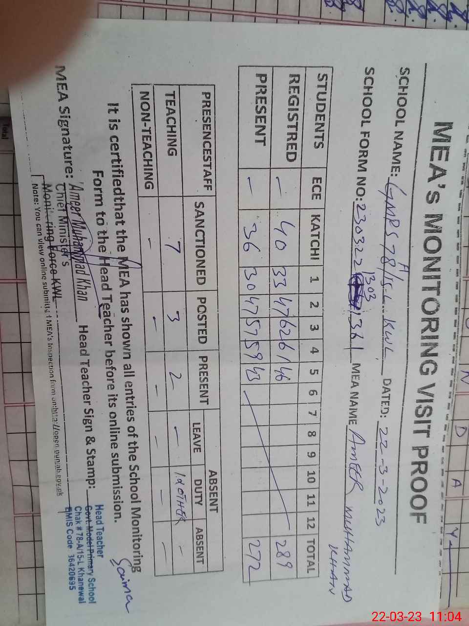 | EMIS Code: 36420695 | Name of School: GPMS 78-A/15-L, KACHA KHUH | |||