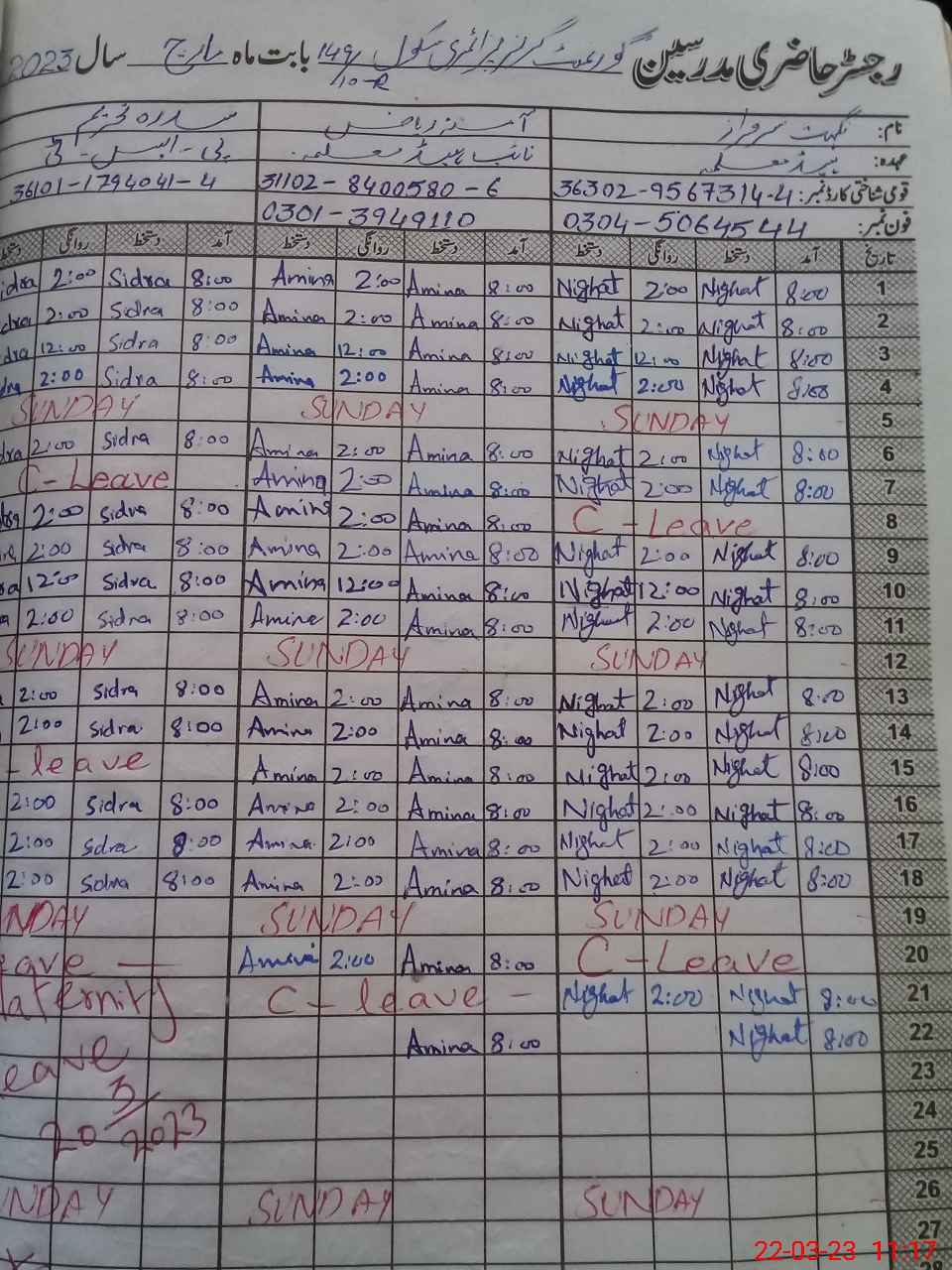 | Name: Qa**** Unni**** Sa**** Designation: (School Headmaster's/Headmistress's) PST Phone/Cell Number: 03**** |