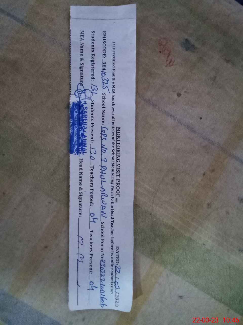 | EMIS Code: 38410325 | Name of School: GPS NO. 3 PHULARWAN | |||