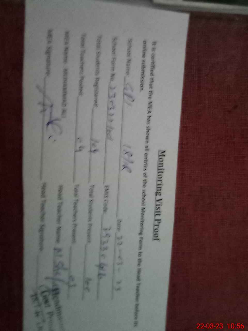 | Certified that this School was Inspected by the Undersigned MEA/DMO Today and the Information Stated Above is as Per Record. | |||||