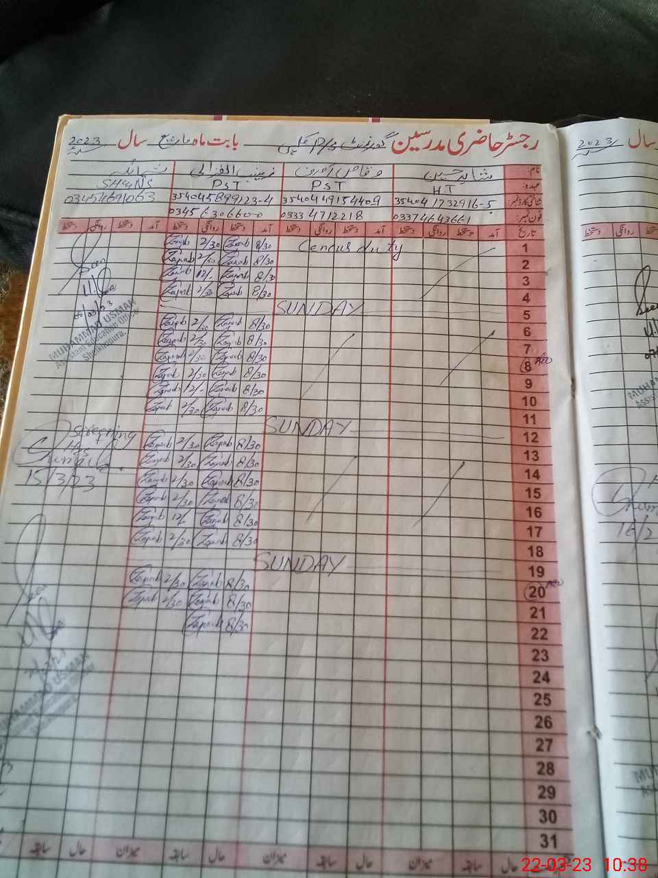 | Name: SH**** HU**** Designation: (School Headmaster's/Headmistress's) PST Phone/Cell Number: 03**** |
