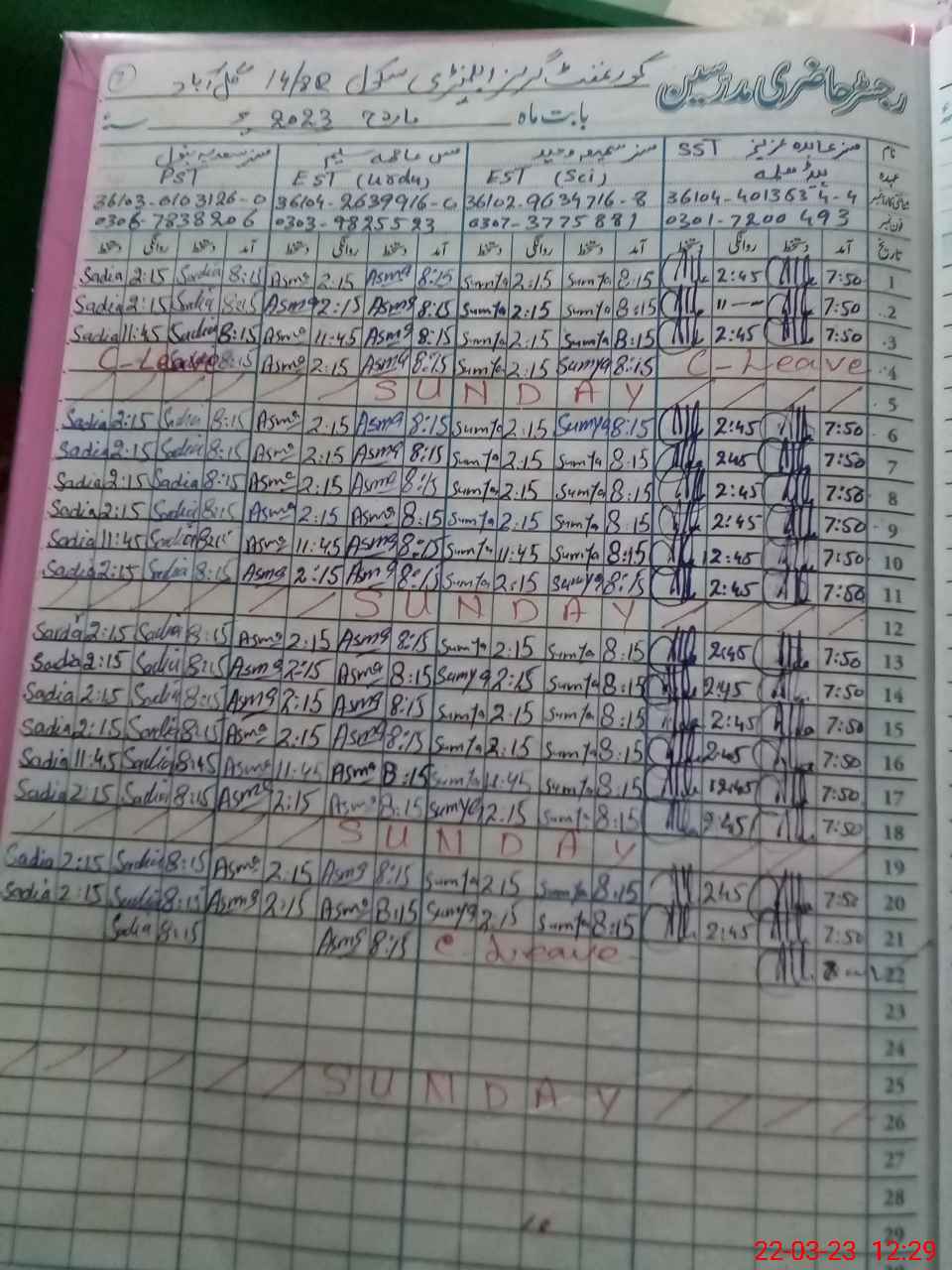| Name: Ab**** Az**** Designation: (School Headmaster's/Headmistress's) SST Phone/Cell Number: 03**** |