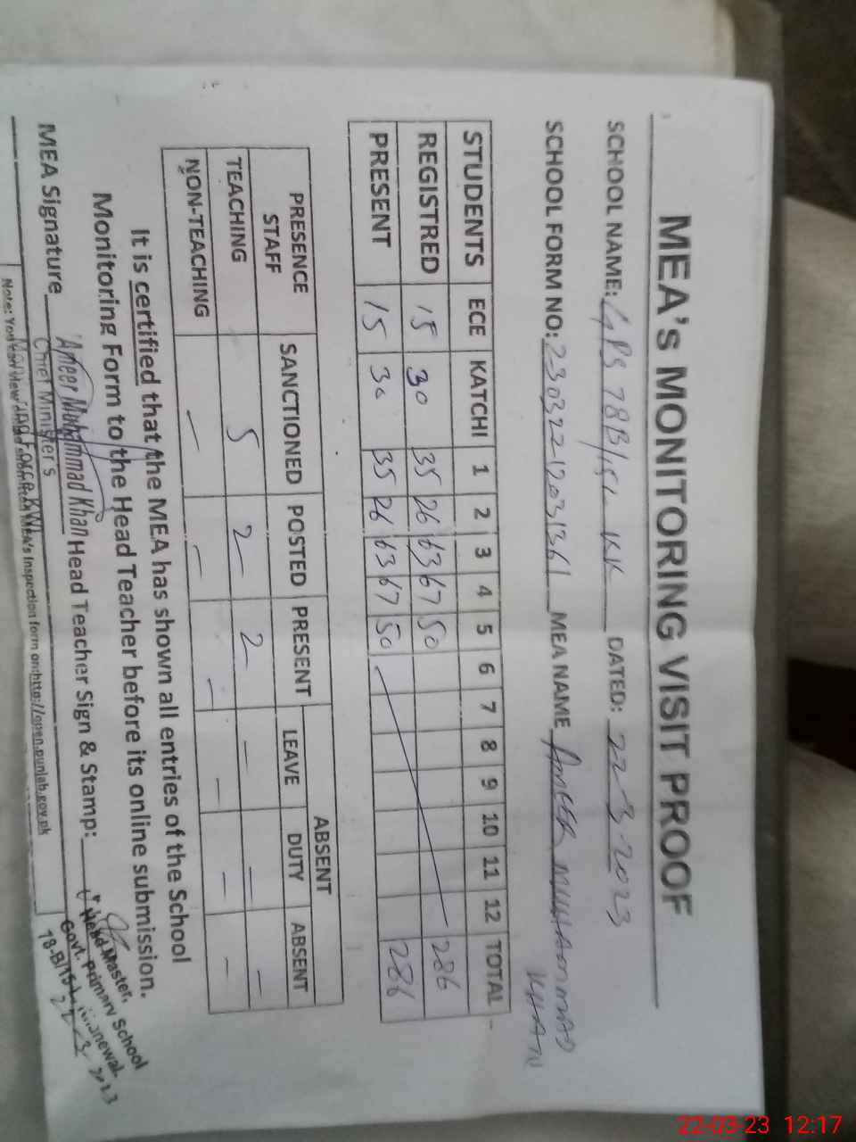 | EMIS Code: 36420663 | Name of School: GPS 78-B/15-L, KHANEWAL | |||